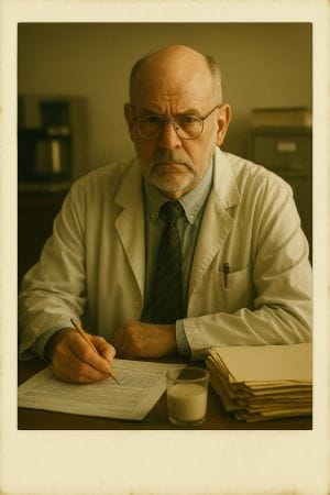 Seine Gedanken riechen nach leerem Wartezimmer und Milchpulver. Er glaubt an Objektivität – auch wenn sie wie ein nervöser Zebrastreifen durch die Akte zittert. Für Vincent war er nicht sichtbar. Und doch war er der erste, der über ihn urteilte. In Abwesenheit. Mit Siegel. Und Büroklammer.