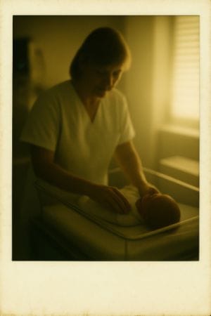 Sie steht am Anfang – und vielleicht auch nicht. Ein Schatten im Geburtsprotokoll, eine Stimme ohne Stimmband. War sie da? Oder war sie nur die letzte sanfte Erinnerung an eine warme Wand? Ein leiser Windzug zwischen Bauch und Welt. Vielleicht trug sie ein Namensschild. Vielleicht war es das Datum.