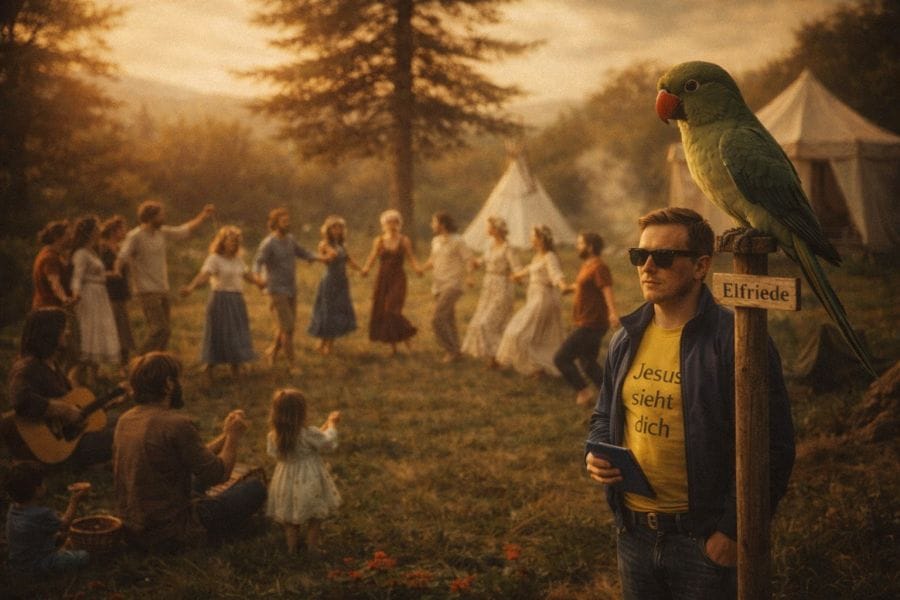 Vieles klang richtig. Die Zedern. Die Sehnsucht. Das Leben in Gemeinschaft. Und vielleicht war es das auch - für einen Moment. Ein Lied, das kurz gestimmt war. Doch Klang allein pflanzt keinen Baum. Und Ideen allein bauen kein Dach. Es braucht Hände. Erde. Und einen Ort, der nicht nur geträumt wird, sondern gebaut. Was blieb? Ein Satz. Ein Lachen. Ein Papagei namens Elfriede. Und vielleicht das leise Wissen: Nicht jede Vision wird Wirklichkeit. Aber manche klingen noch nach, wenn du längst wieder allein am Bahnhof stehst mit Schlamm an den Schuhen und Wald im Herzen.